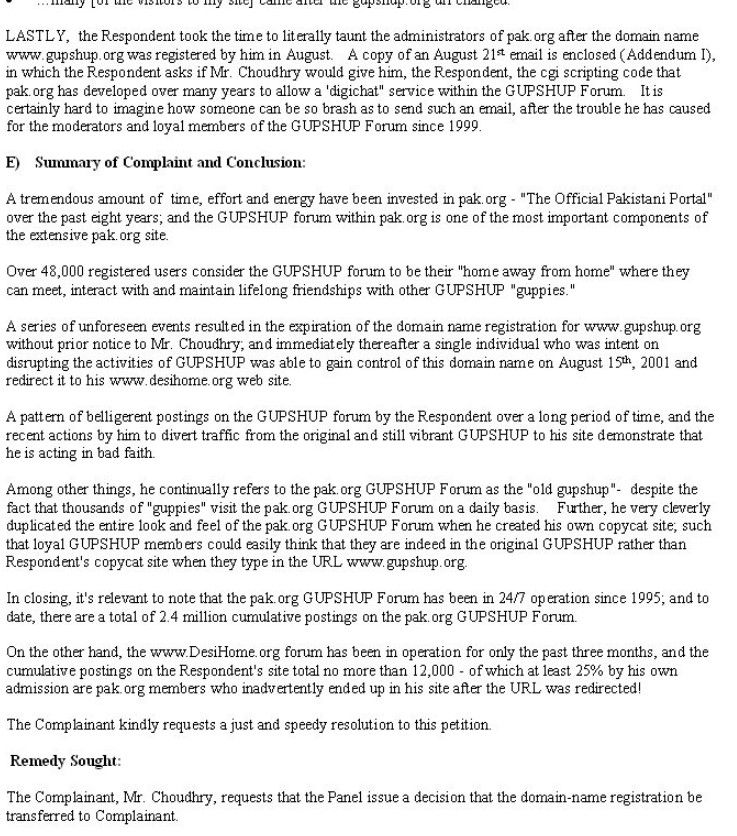 To prevail in an arbitration for this type of issue (a 'hijacked' domain name) is not an easy thing - but Andrew accomplished that, without assistance. Here is the Petition as submitted, and a copy of the Arbitrator's affirmative decision below.
